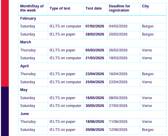 * Къде и кога мога да се явя на изпит IELTS в България?
